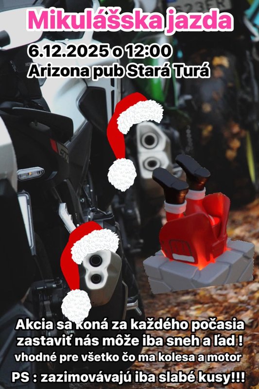 MIKULÁŠSKA JAZDA STARÁ TURÁ 2025 - Motoakcie, Stretnutia - Kalendár Moto-Akcí Pridaj akciuZdieľaťMotoakcie, Stretnutia - MIKULÁŠSKA JAZDA STARÁ TURÁ 2025